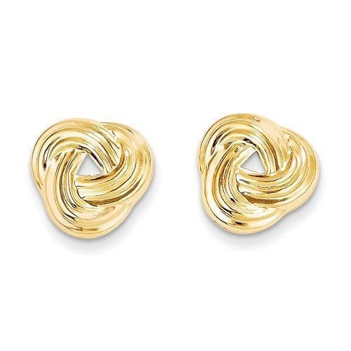 Get knotty in style with our LIV 14k Solid Yellow Gold Love Knot Earrings! These unique studs feature a cable design and post back for secure wear. Made with high-quality gold, they add a touch of elegance with a playful twist to any outfit.