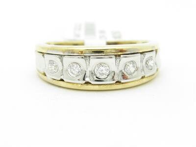 Say 'I do' in style with LIV's 14k Two Tone Gold & Diamond Bezel Set Wedding Band Design Ring. The perfect blend of classic and modern, this ring boasts elegant gold and sparkling diamonds for a truly unique and charming addition to your special day.