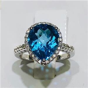 Experience the ultimate in luxury with our LIV 14k White Gold & Diamonds Blue Topaz Pear Halo Ring. The stunning blue topaz gemstone is surrounded by a sparkling halo of diamonds, adding a touch of elegance to any look. Elevate your style and make a statement with this one-of-a-kind ring.