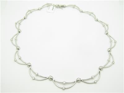 THIS IS TRULY A MUST HAVE DESIGNER 14KT WHITE GOLD & DIAMONDS ABSTRACT DESIGN TENNIS NECKLACE FOR ALL OCCASIONS. MADE WITH 14KT WHITE GOLD .585. GET THE DESIGNER LOOK WITHOUT THE EXPENSIVE PRICE TAG! THIS NECKLACE WOULD BE A COMPLIMENT FOR ANYONES JEWELRY COLLECTION. ALL STONES ARE HAND SET GENUINE DIAMONDS FOR A BEAUTIFUL LOOK & SPARKLE! PLEASE VIEW OUR LISTINGS FOR SOME OTHER UNIQUE ITEMS. COMES WITH A BEAUTIFUL JEWELRY BOX FREE!!