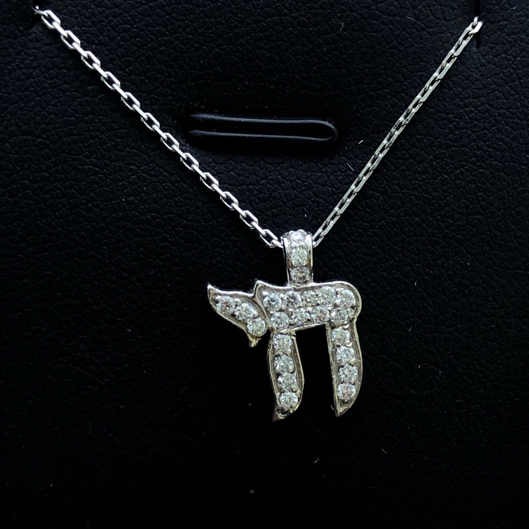 LIV 14k White Gold & Diamonds Chai Life Cable Pave Design Layered Necklace Gift