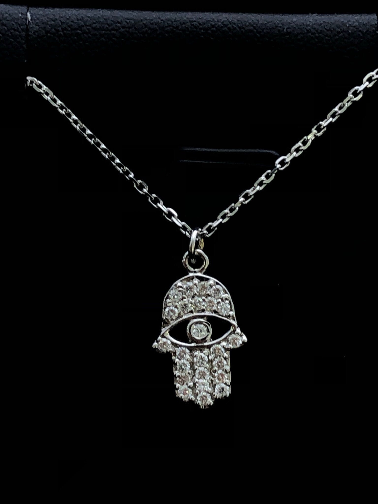 LIV 14k White Gold & Diamonds Pave Hand of God Hamsa Halo Necklace