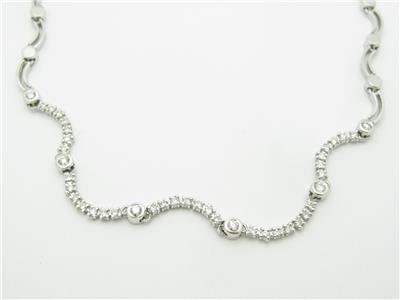 THIS IS TRULY A MUST HAVE DESIGNER 14KT WHITE GOLD & DIAMONDS HALO WAVE DESIGN TENNIS NECKLACE FOR ALL OCCASIONS. MADE WITH 14KT WHITE GOLD .585. GET THE DESIGNER LOOK WITHOUT THE EXPENSIVE PRICE TAG! THIS NECKLACE WOULD BE A COMPLIMENT FOR ANYONES JEWELRY COLLECTION. ALL STONES ARE HAND SET GENUINE DIAMONDS FOR A BEAUTIFUL LOOK & SPARKLE! PLEASE VIEW OUR LISTINGS FOR SOME OTHER UNIQUE ITEMS. COMES WITH A BEAUTIFUL JEWELRY BOX FREE!!