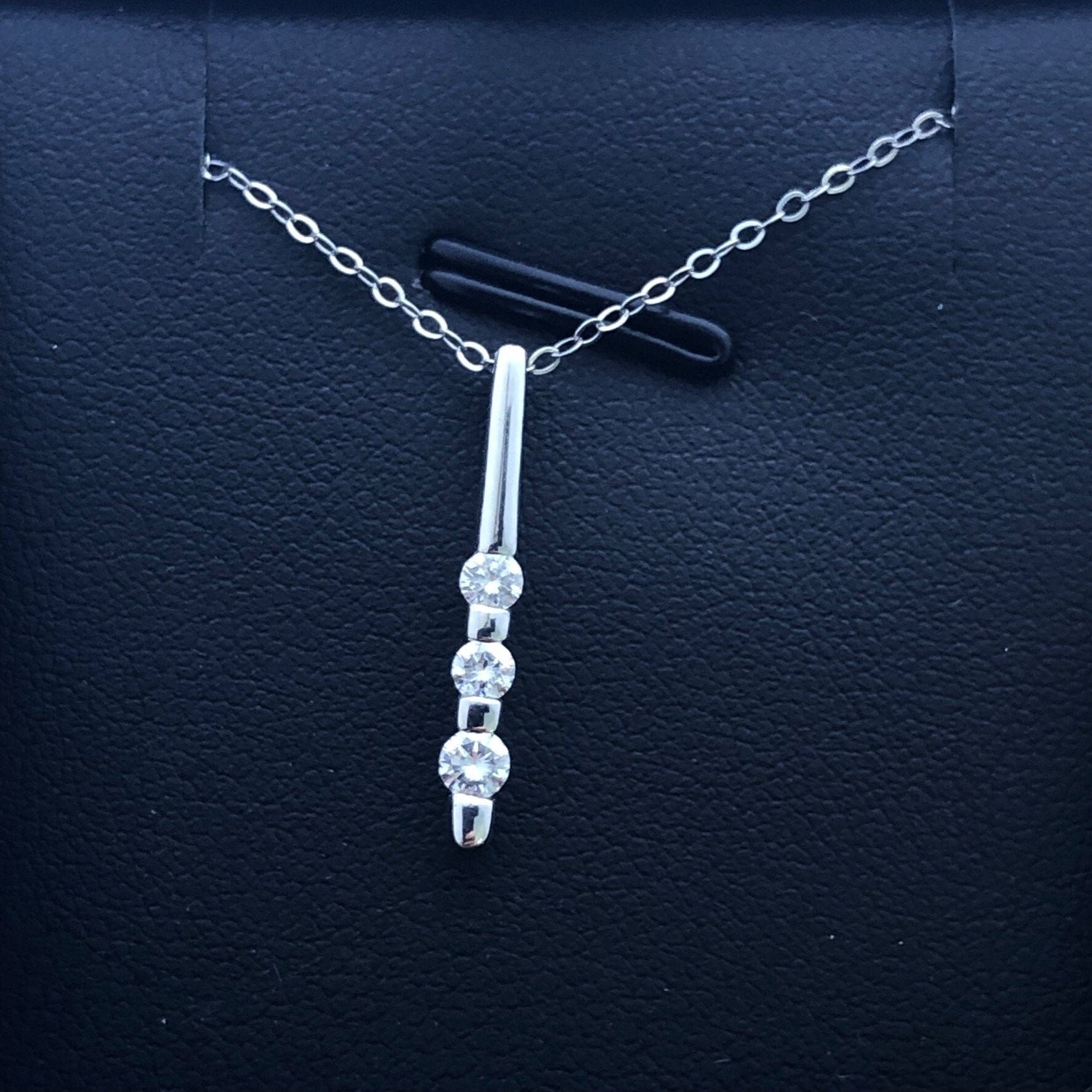 LIV 14k White Gold & Diamonds Round 3 Stone Halo Drop Design Pendant Necklace Gift