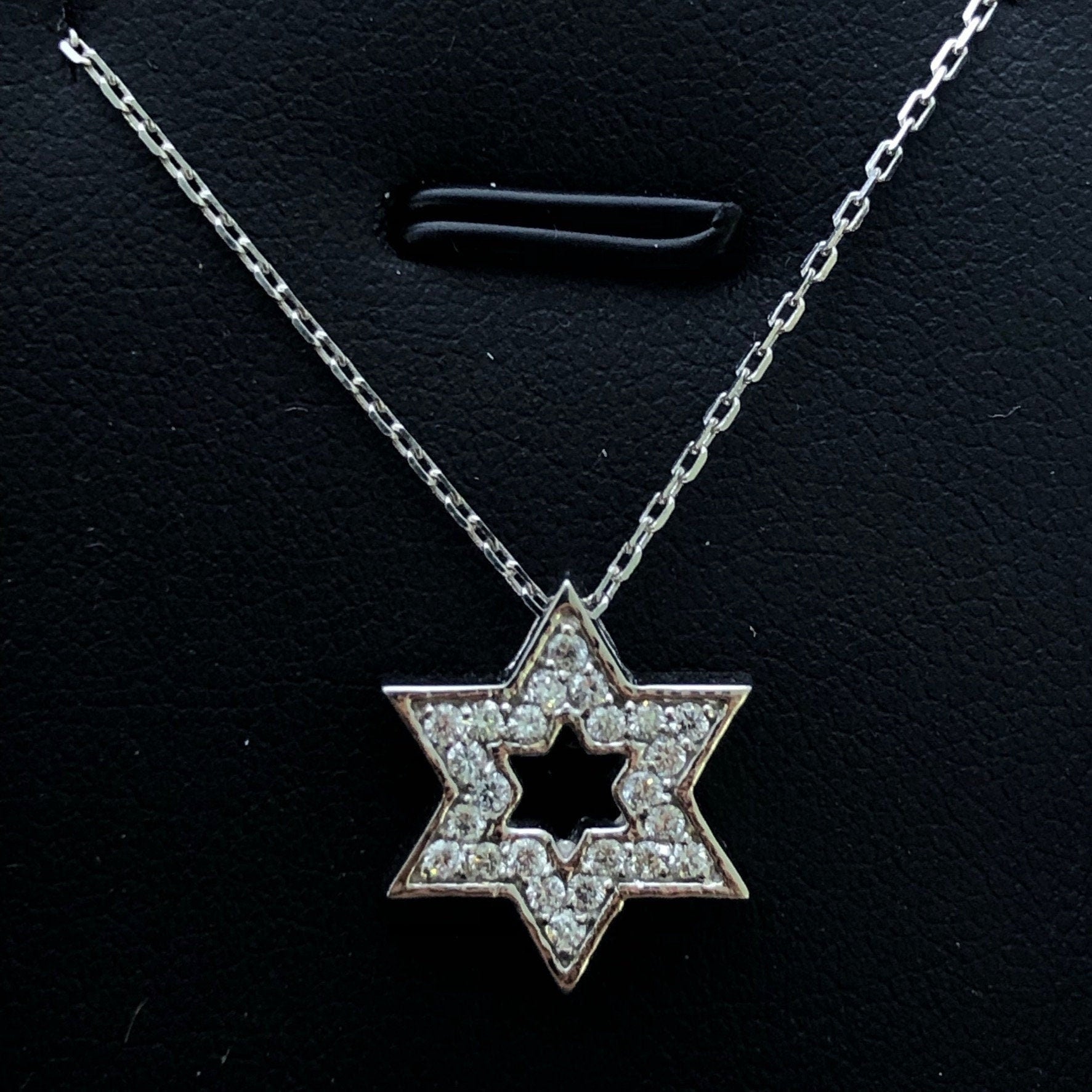 LIV 14k White Gold & Diamonds Star of David Pave Halo Design Layered Necklace Gift