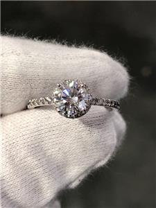 LIV 14k White Gold Genuine Diamond Round Cut Moissanite Halo Engagement Ring