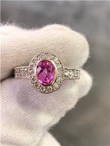 THIS IS TRULY A MUST HAVE DESIGNER 14K WHITE GOLD GENUINE DIAMONDS & PINK TOURMALINE HALO DESIGN RING FOR ALL OCCASIONS. MADE WITH 14K WHITE GOLD .585. GET THE DESIGNER LOOK WITHOUT THE EXPENSIVE PRICE TAG! THIS RING WOULD BE A COMPLIMENT FOR ANYONE'S JEWELRY COLLECTION. ALL STONES ARE HAND SET GENUINE WHITE DIAMONDS & PINK TOURMALINE FOR A BEAUTIFUL LOOK & SPARKLE! PLEASE VIEW OUR LISTINGS FOR SOME OTHER UNIQUE ITEMS. COMES WITH A BEAUTIFUL JEWELRY BOX FREE!!
