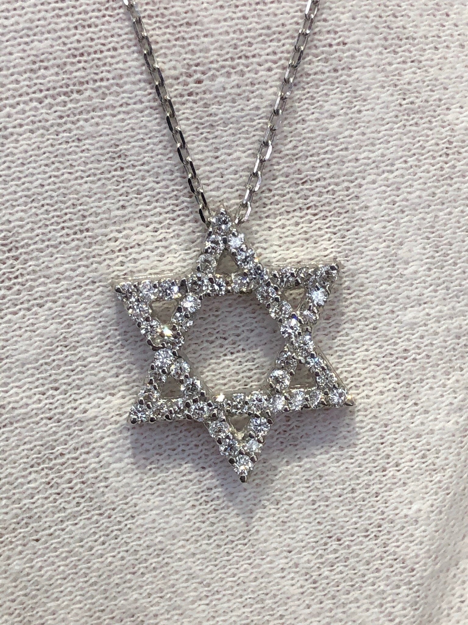 14k White Gold LIV star of david hand made genuine diamonds necklace. Features full cut diamonds with a total weight of 0.50ct G/VVS. Hand crafted in manhattan with the world's finest materials.