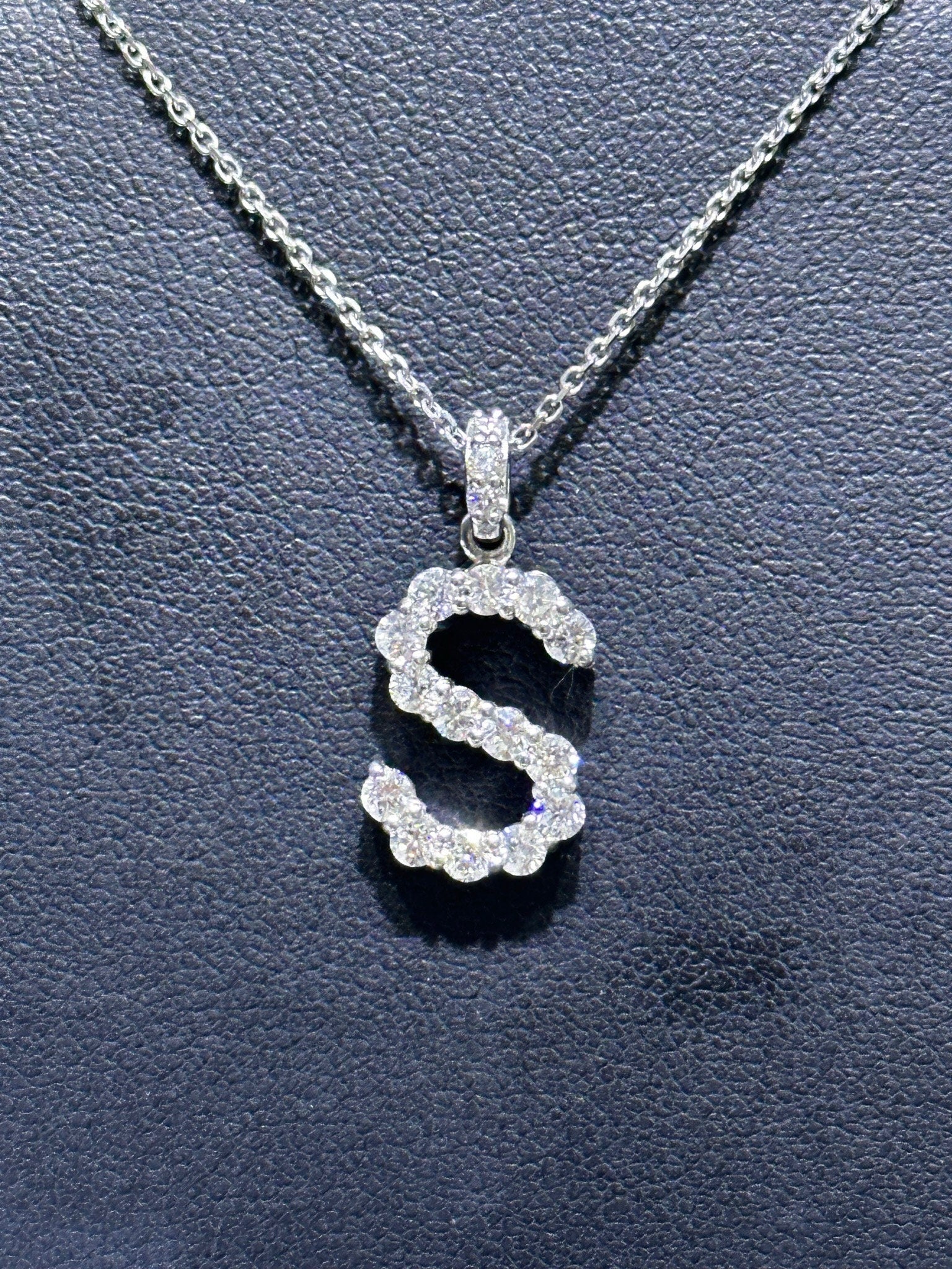 LIV 14k White Gold & Natural Diamonds Initial S Design Letter Alphabet Necklace 16"L