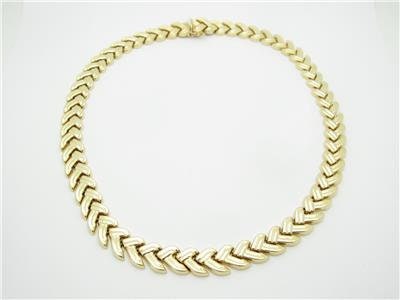 THIS IS TRULY A MUST HAVE DESIGNER 14K YELLOW GOLD 10.5MM WIDE ARROW DESIGN TENNIS NECKLACE FOR ALL OCCASIONS. MADE WITH 14K YELLOW GOLD .585. GET THE DESIGNER LOOK WITHOUT THE EXPENSIVE PRICE TAG! THIS NECKLACE WOULD BE A COMPLIMENT FOR ANYONES JEWELRY COLLECTION. PLEASE VIEW OUR LISTINGS FOR SOME OTHER UNIQUE ITEMS. FREE JEWELRY BOX INCLUDED!