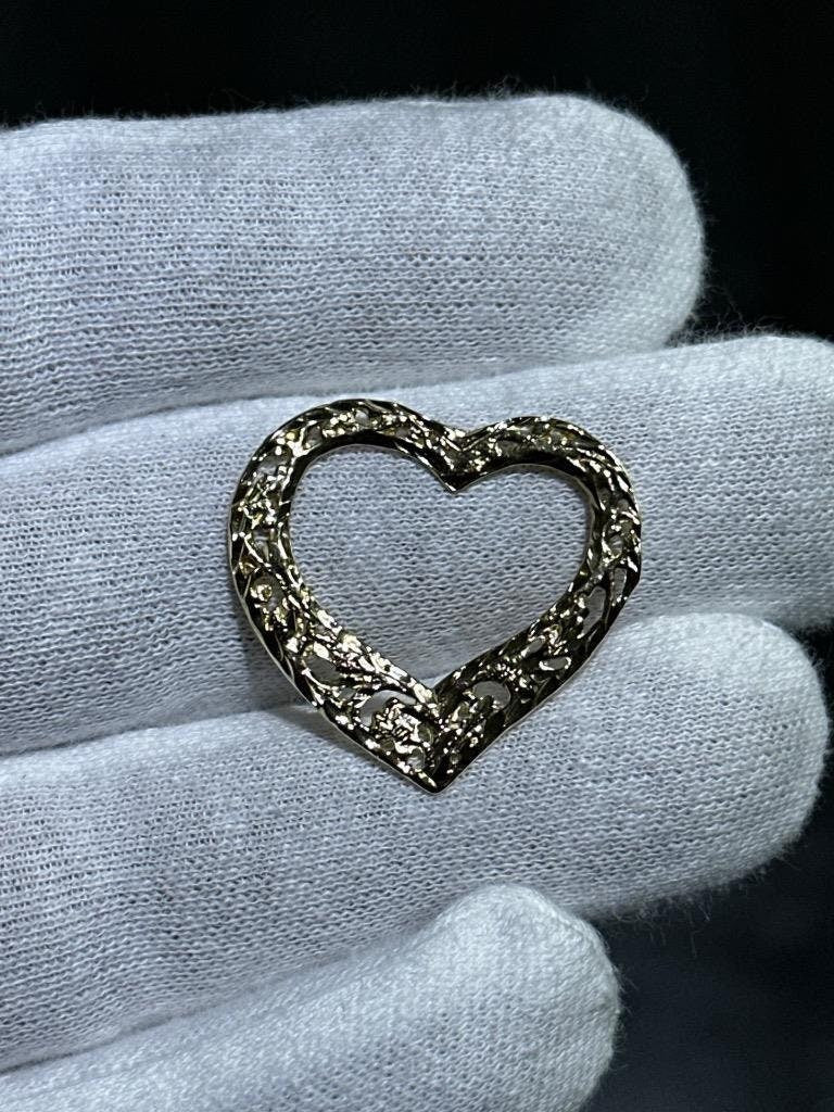 LIV 14k Yellow Gold Diamond Cut Open Heart Vintage Charm Pendant 2.2 Grams Gift