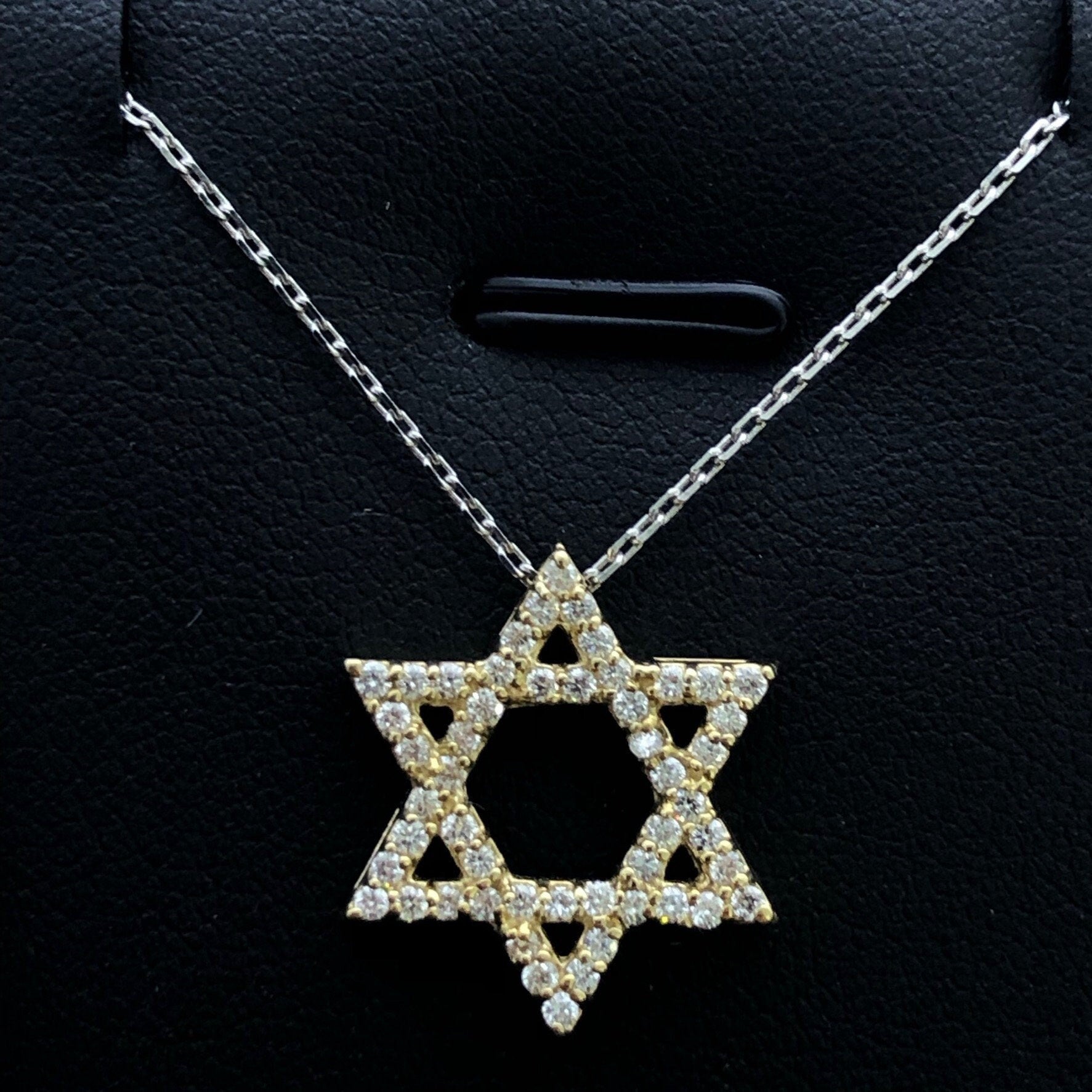 LIV 14k Yellow Gold & Diamonds G/VS1 Pave Star of David Halo Necklace Gift