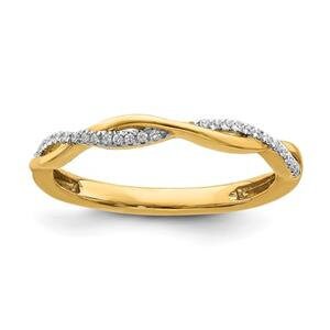 LIV 14k Yellow Gold & Diamonds Pave Braided Design 2mm Wide Stackable Band Ring