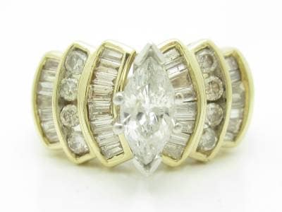 THIS IS TRULY A MUST HAVE DESIGNER 14KT YELLOW GOLD GENUINE WHITE DIAMOND MARQUISE CHANNEL SET ENGAGEMENT RING FOR ALL OCCASIONS. MADE WITH SOLID 14KT YELLOW GOLD .585. GET THE DESIGNER LOOK WITHOUT THE EXPENSIVE PRICE TAG! THIS RING WOULD BE A COMPLIMENT FOR ANYONES JEWELRY COLLECTION. ALL STONES ARE HAND SET GENUINE WHITE DIAMONDS FOR A BEAUTIFUL LOOK & SPARKLE! PLEASE VIEW OUR LISTINGS FOR SOME OTHER UNIQUE ITEMS. COMES WITH A BEAUTIFUL JEWELRY BOX FREE!!