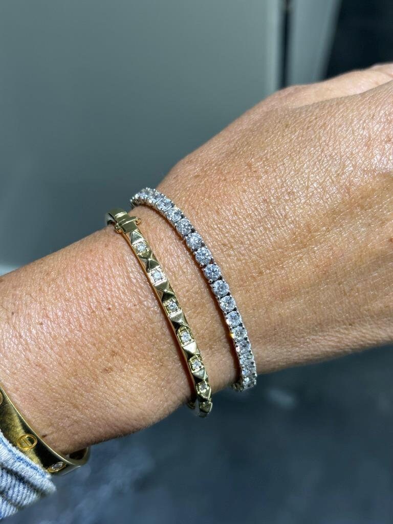 LIV 14k Yellow Gold Natural Diamonds Spike Design Stackable Bangle Bracelet 7" Gift