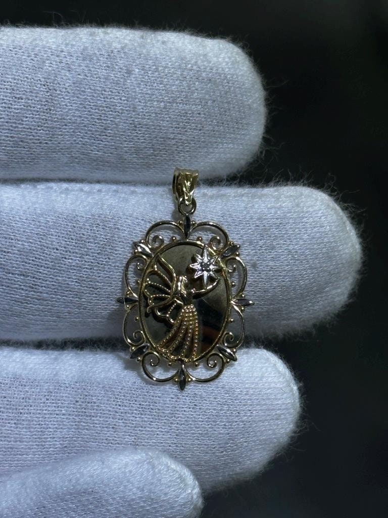LIV 14k Yellow Gold Vintage Guardian Angle Halo Hand Made Charm Pendant 1.5 Grams