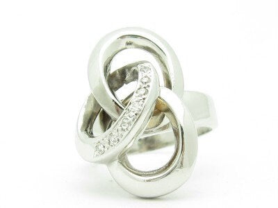 LIV 14KT Solid White Gold Genuine White Diamond Abstract Circle Design Fashion Ring Band