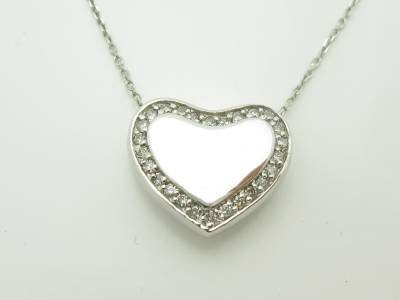 LIV 14kt White Gold Genuine White Diamond Solid Heart Halo Design Drop Necklace Gift