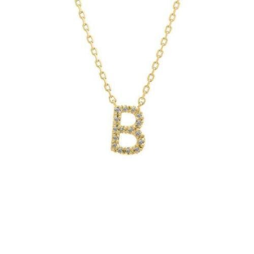 LIV 18k Gold Sterling Silver & Diamonds Initial B Station Halo Necklace 16" L Gift