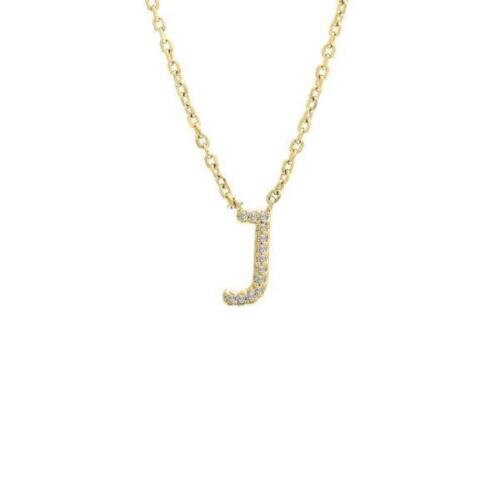 LIV 18k Gold Sterling Silver & Diamonds Initial J Station Halo Necklace 16" L Gift