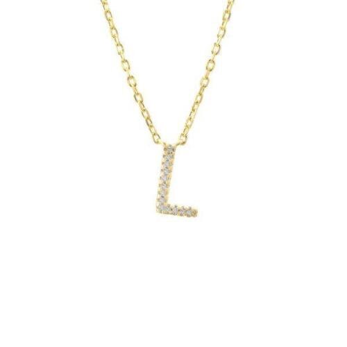 LIV 18k Gold Sterling Silver & Diamonds Initial L Station Halo Necklace 16" L Gift