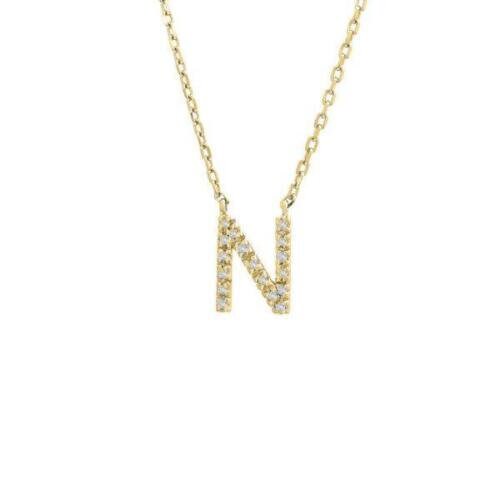 LIV 18k Gold Sterling Silver & Diamonds Initial N Station Halo Necklace 16" L Gift
