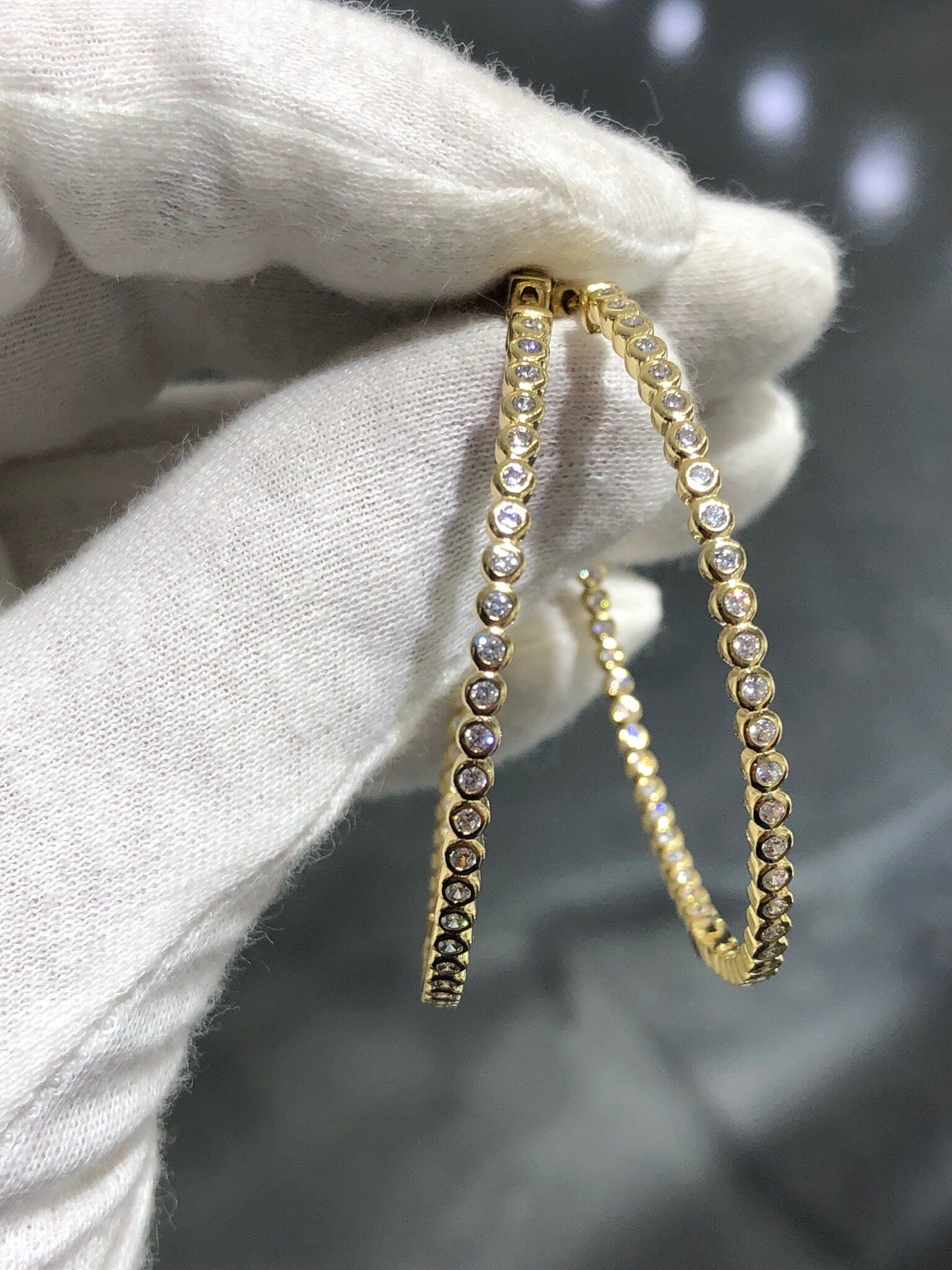 LIV 18K Gold Sterling Silver Inside Out White Sapphire Large Hoop Earrings Gift