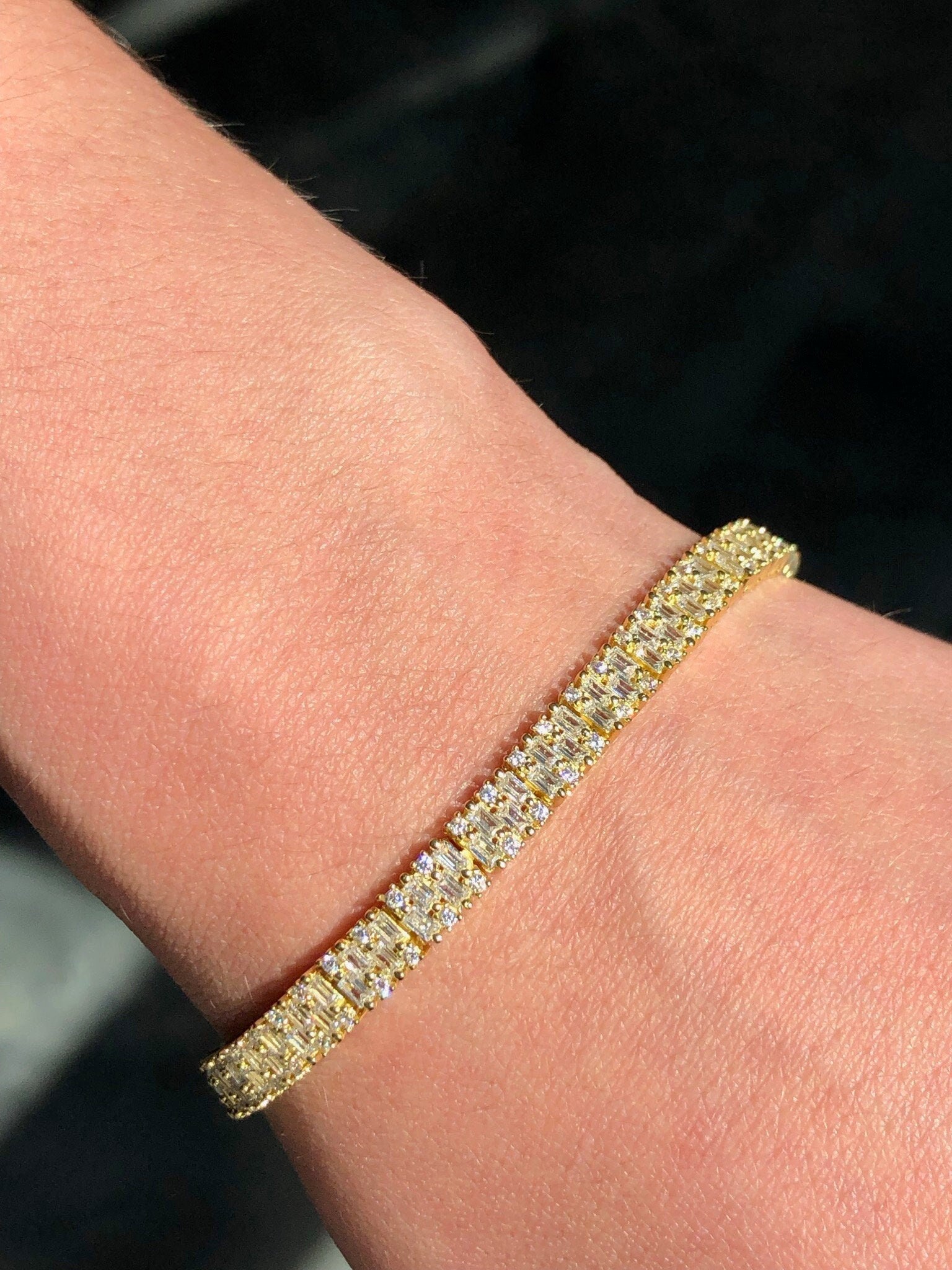 LIV 18k Gold Sterling Silver Pave White Sapphire Baguette Halo Tennis Bracelet Gift