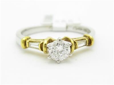 THIS IS TRULY A MUST HAVE DESIGNER 18KT YELLOW GOLD & PLATINUM GENUINE ROUND DIAMOND BAGUETTE DESIGN RING FOR ALL OCCASIONS. MADE WITH 18KT YELLOW GOLD .750 & PLATINUM. GET THE DESIGNER LOOK WITHOUT THE EXPENSIVE PRICE TAG! THIS RING WOULD BE A COMPLIMENT FOR ANYONES JEWELRY COLLECTION. ALL STONES ARE HAND SET GENUINE WHITE DIAMONDS FOR A BEAUTIFUL LOOK & SPARKLE! PLEASE VIEW OUR LISTINGS FOR SOME OTHER UNIQUE ITEMS. COMES WITH A BEAUTIFUL JEWELRY BOX FREE!!
