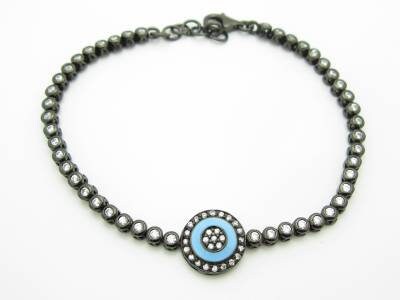 LIV 18kt Black Gold Sterling Silver White Sapphire Evil Eye Kabbalah Tennis Bracelet