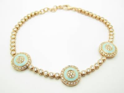 18KT ROSE GOLD STERLING SILVER DIAMOND SET WHITE SAPPHIRE EVIL EYE KABBALAH DESIGN TENNIS BRACELET