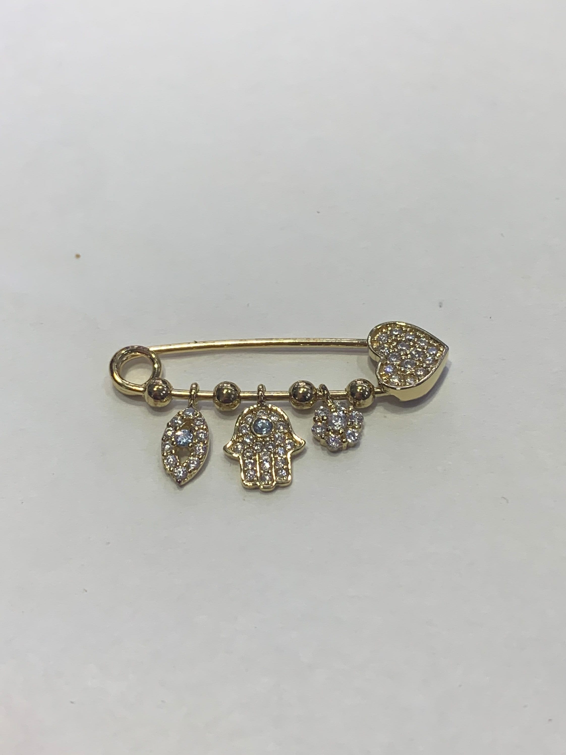 Evil Eye Protection Pin with Charms and hand placed simulated diamonds