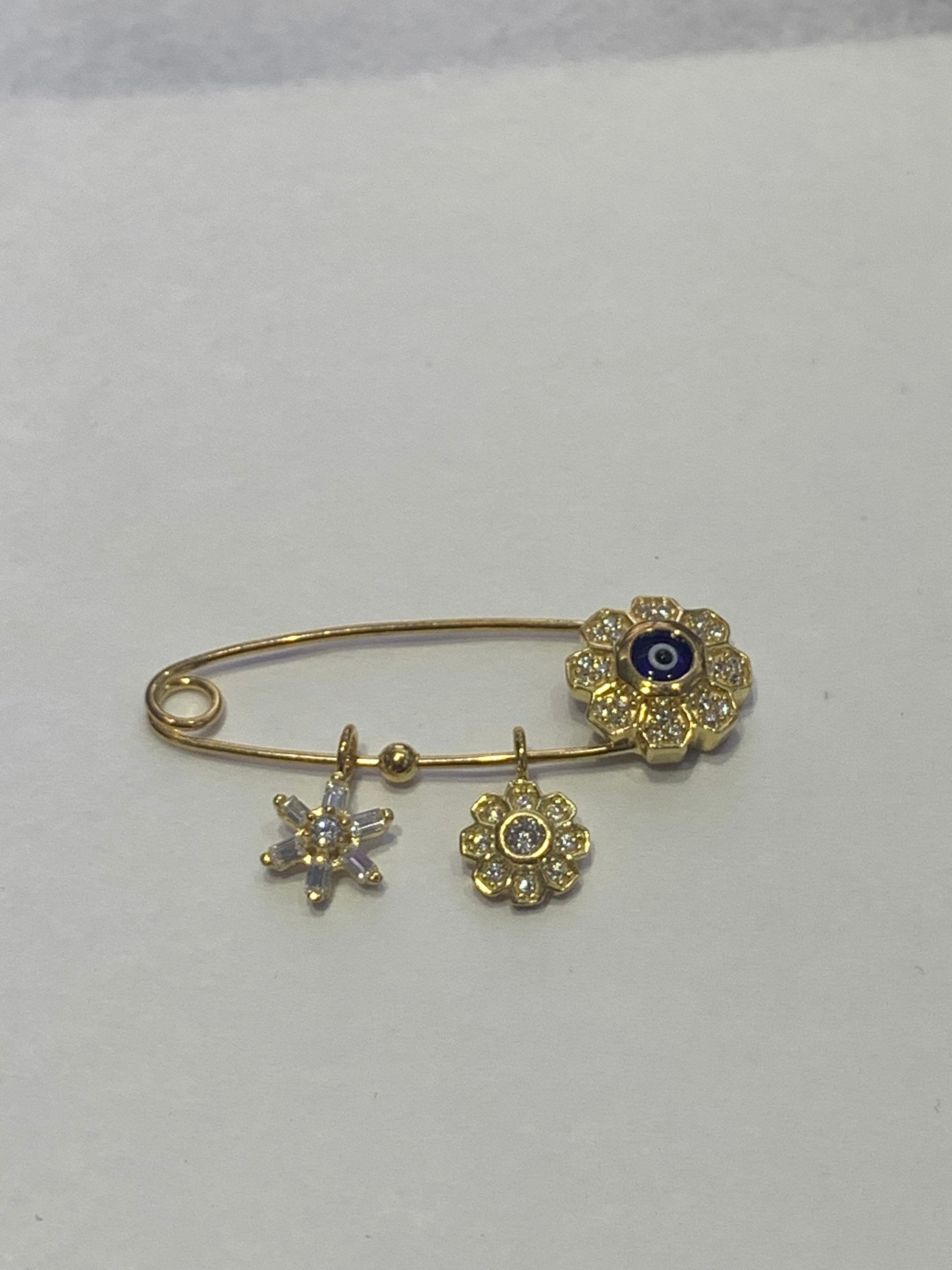 Sterling Silver Evil Eye Protection with Charms and Hand placed simulated diamonds