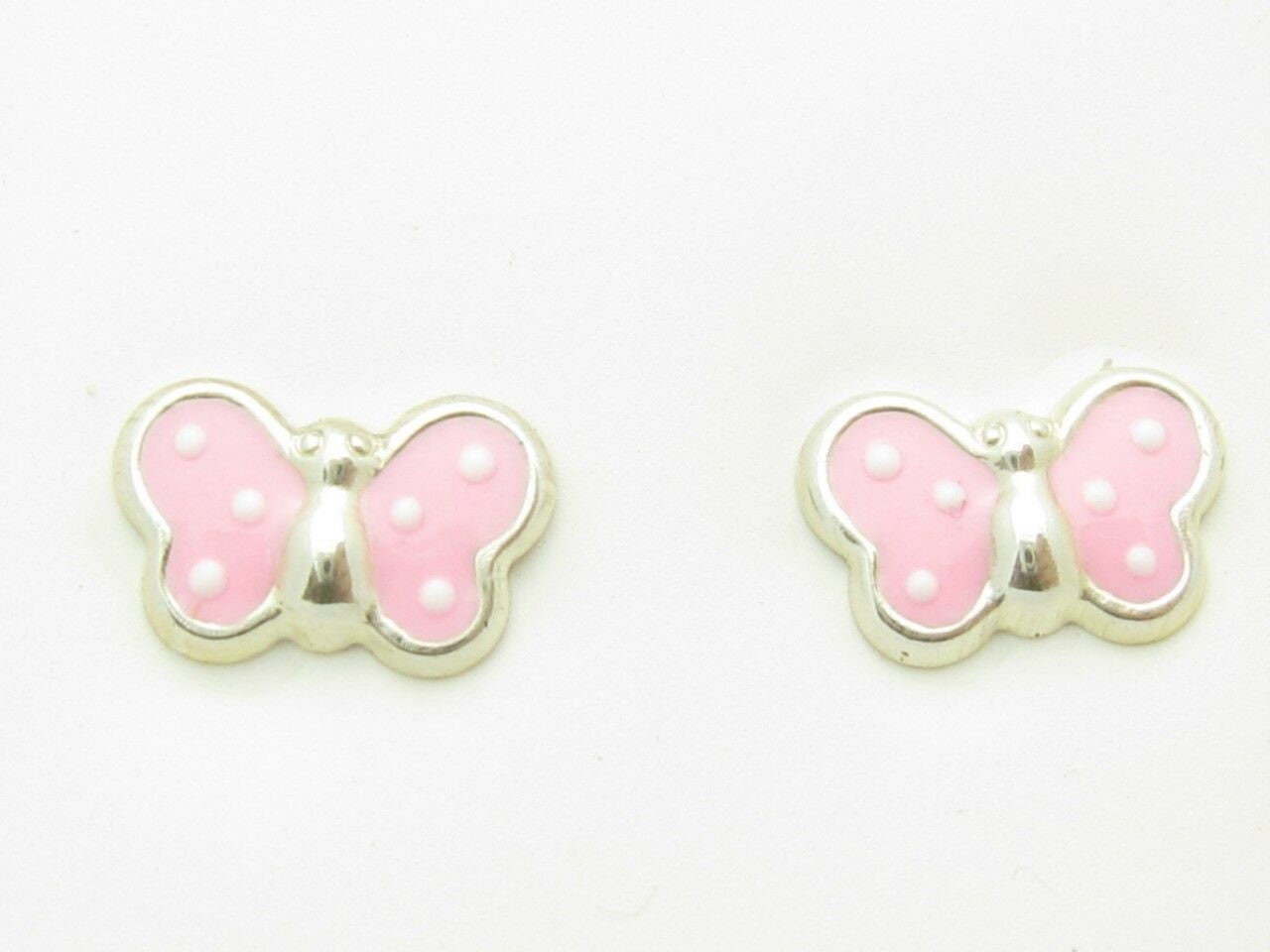 THIS IS TRULY A MUST HAVE DESIGNER PLATINUM STERLING SILVER PINK ENAMEL BUTTERFLY STUD CHILDREN/BABY EARRINGS FOR ALL OCCASIONS. MADE WITH PLATINUM OVER STERLING SILVER .925. GET THE DESIGNER LOOK WITHOUT THE EXPENSIVE PRICE TAG! THIS UNIQUE HAND MADE BUTTERFLY DESIGN EARRINGS WILL NEVER TARNISH. WEAR IT WITH CONFIDENCE! THIS EARRING WOULD BE A COMPLIMENT FOR ANYONES JEWELRY COLLECTION. PLEASE VIEW OUR LISTINGS FOR SOME OTHER UNIQUE ITEMS. COMES WITH A BEAUTIFUL JEWELRY BOX FREE!!