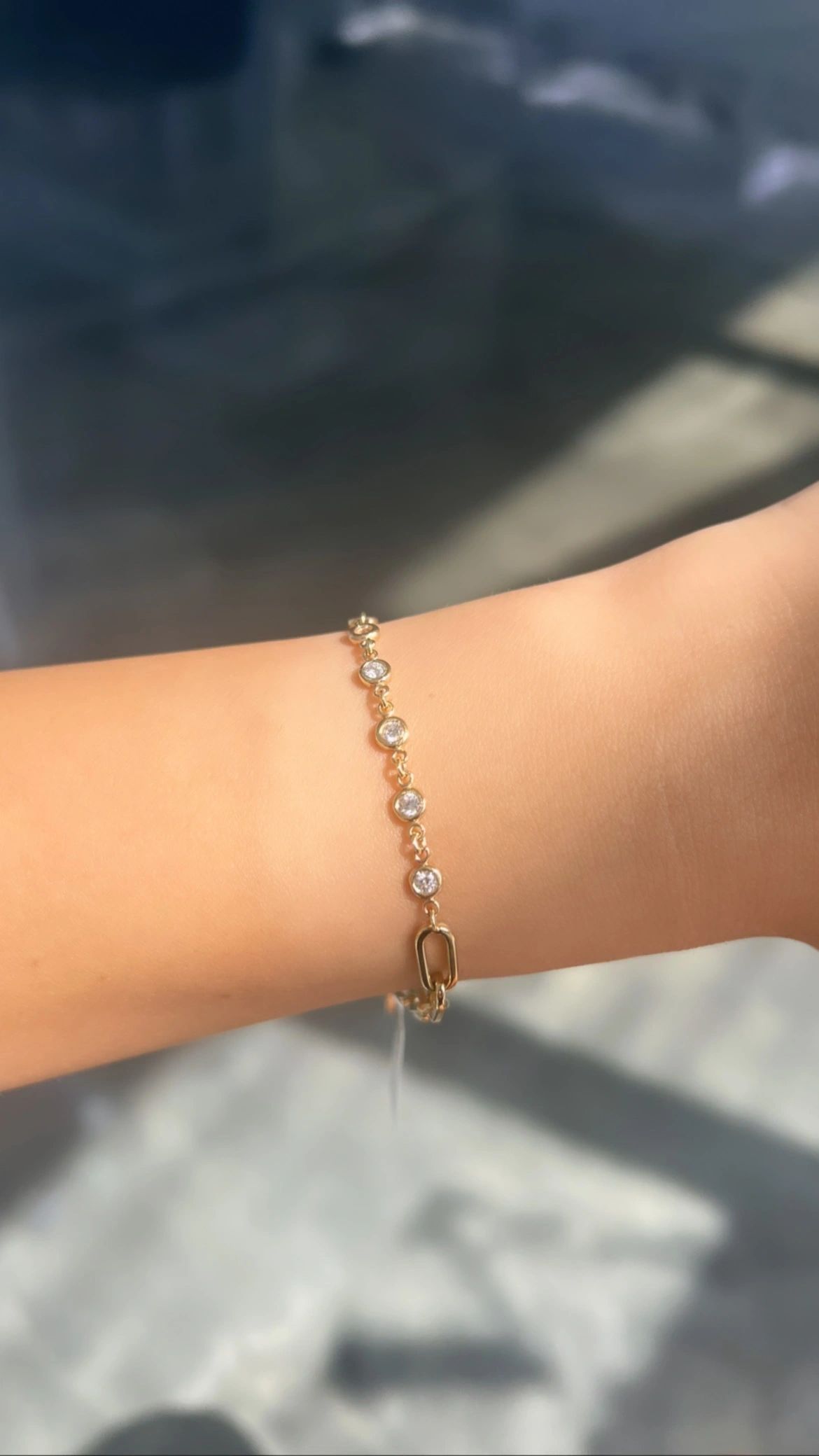Increase your style and sparkle with this ingeniously crafted bracelet featuring a playful combination of 14K gold and shimmering diamonds. It's the perfect accessory to elevate any outfit.