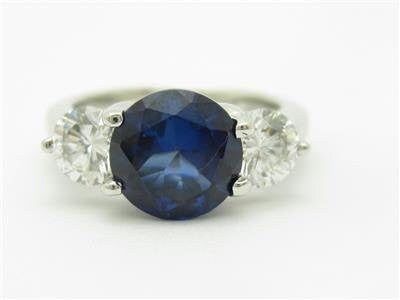 THIS IS TRULY A MUST HAVE DESIGNER PLATINUM WHITE & BLUE SAPPHIRE 3 STONE ENGAGEMENT PROMISE RING FOR ALL OCCASIONS. MADE WITH SOLID PLATINUM (.950) GET THE DESIGNER LOOK WITHOUT THE EXPENSIVE PRICE TAG! THIS RING WOULD BE A COMPLIMENT FOR ANYONE'S JEWELRY COLLECTION. ALL STONES ARE HAND SET SIMULATED WHITE & BLUE SAPPHIRES FOR THE REAL DIAMOND LOOK & SPARKLE! PLEASE VIEW OUR LISTINGS FOR SOME OTHER UNIQUE ITEMS. COMES WITH A BEAUTIFUL JEWELRY BOX.