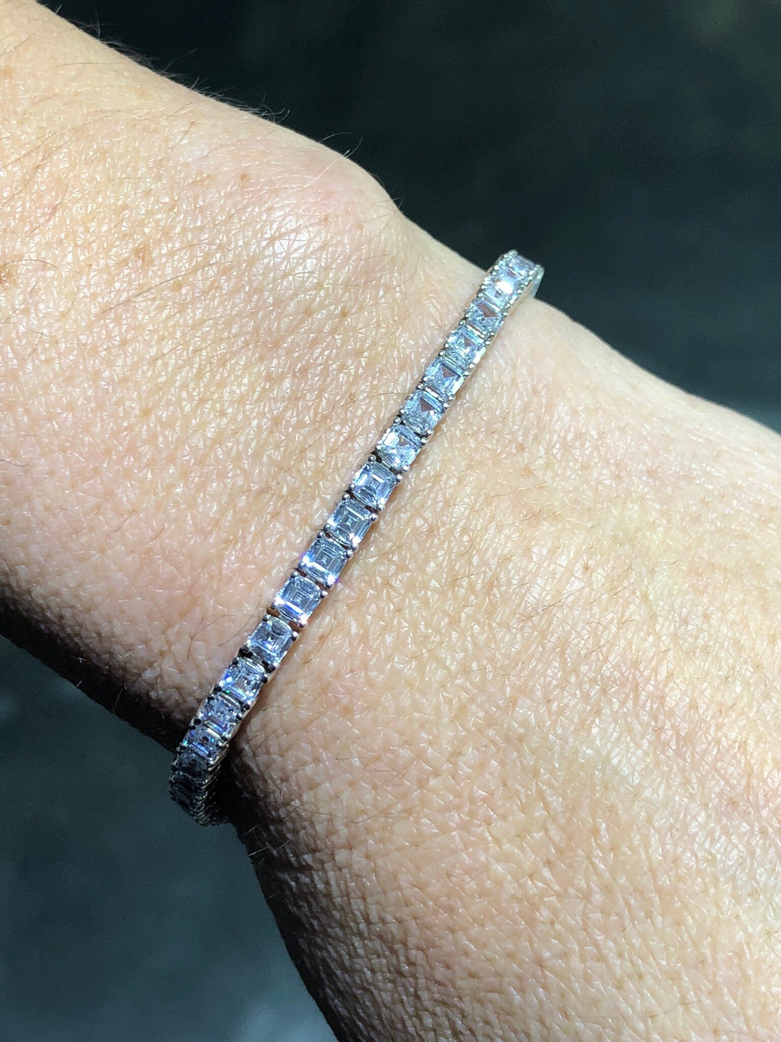LIV Platinum Over Sterling Silver Asscher Cut White Sapphire Halo Design Tennis Bracelet Bridal Gift