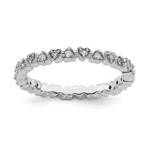 LIV Platinum Silver & White Diamonds Eternity Halo Heart Stackable Band Ring
