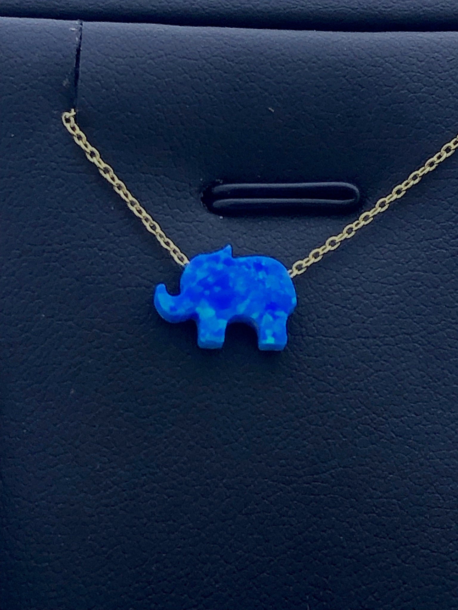 LIV Platinum Sterling Silver .925 Blue Opal Elephant Design Stackable Necklace Gift