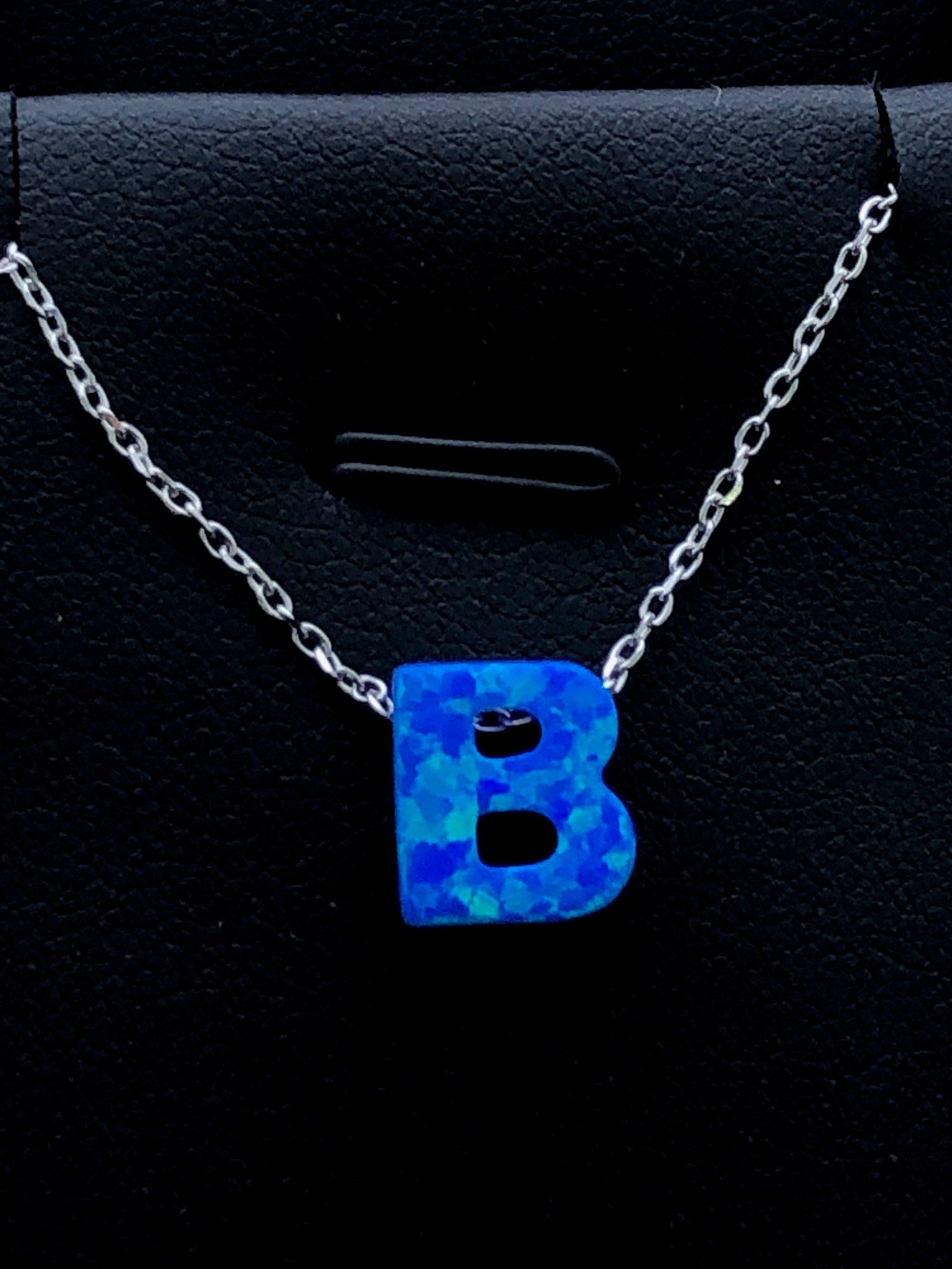 LIV Platinum Sterling Silver .925 Blue Opal Initial B Alphabet Name Necklace Gift