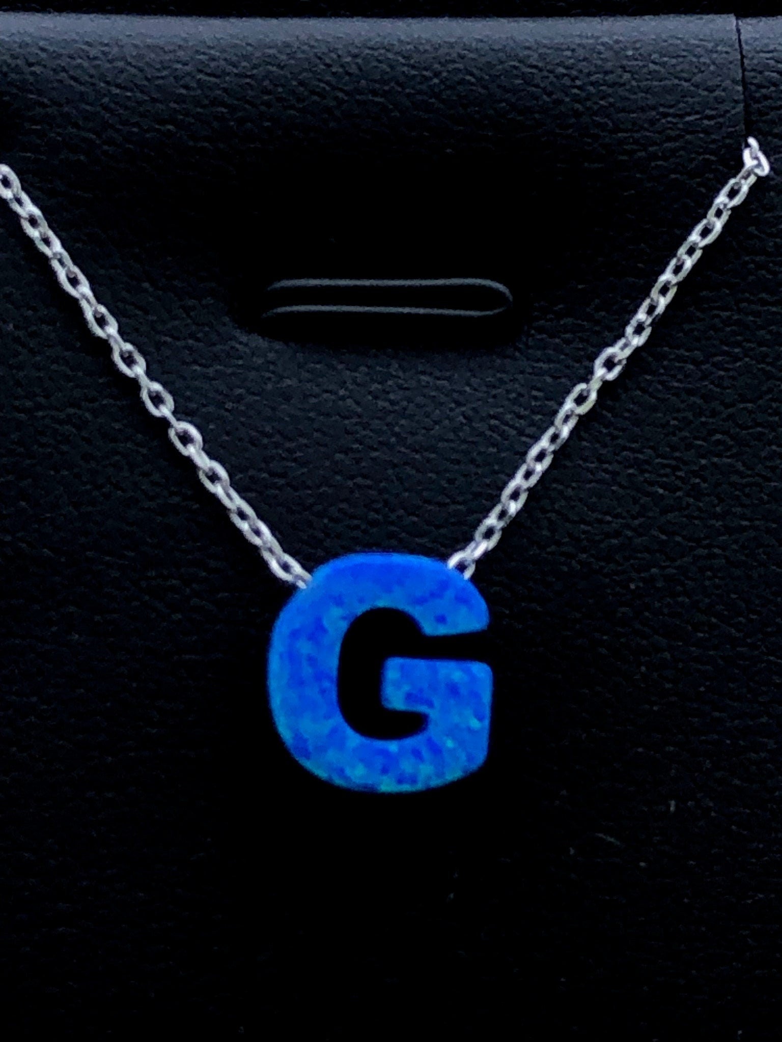 LIV Platinum Sterling Silver .925 Blue Opal Initial G Alphabet Name Necklace Gift
