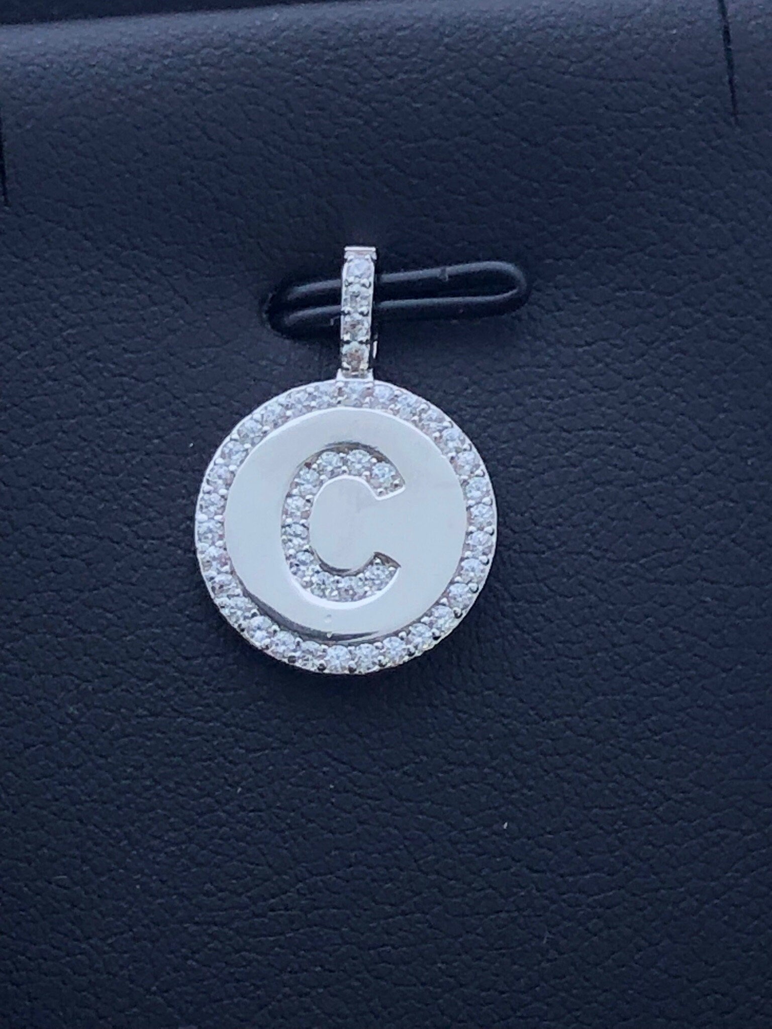 LIV Platinum Sterling Silver .925 White Sapphire Initial C Heart Halo Necklace Gift