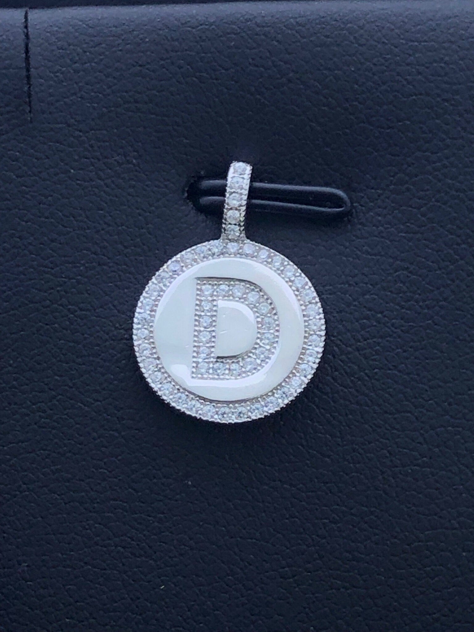 LIV Platinum Sterling Silver .925 White Sapphire Initial D Round Halo Necklace Gift