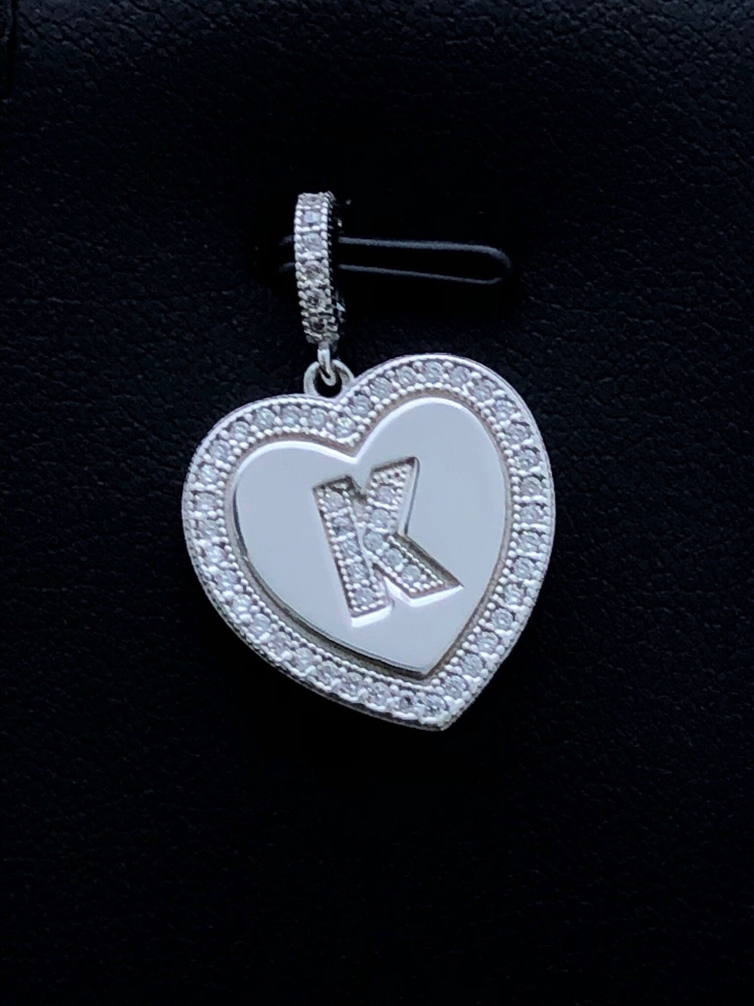 LIV Platinum Sterling Silver .925 White Sapphire Initial K Heart Halo Necklace Gift