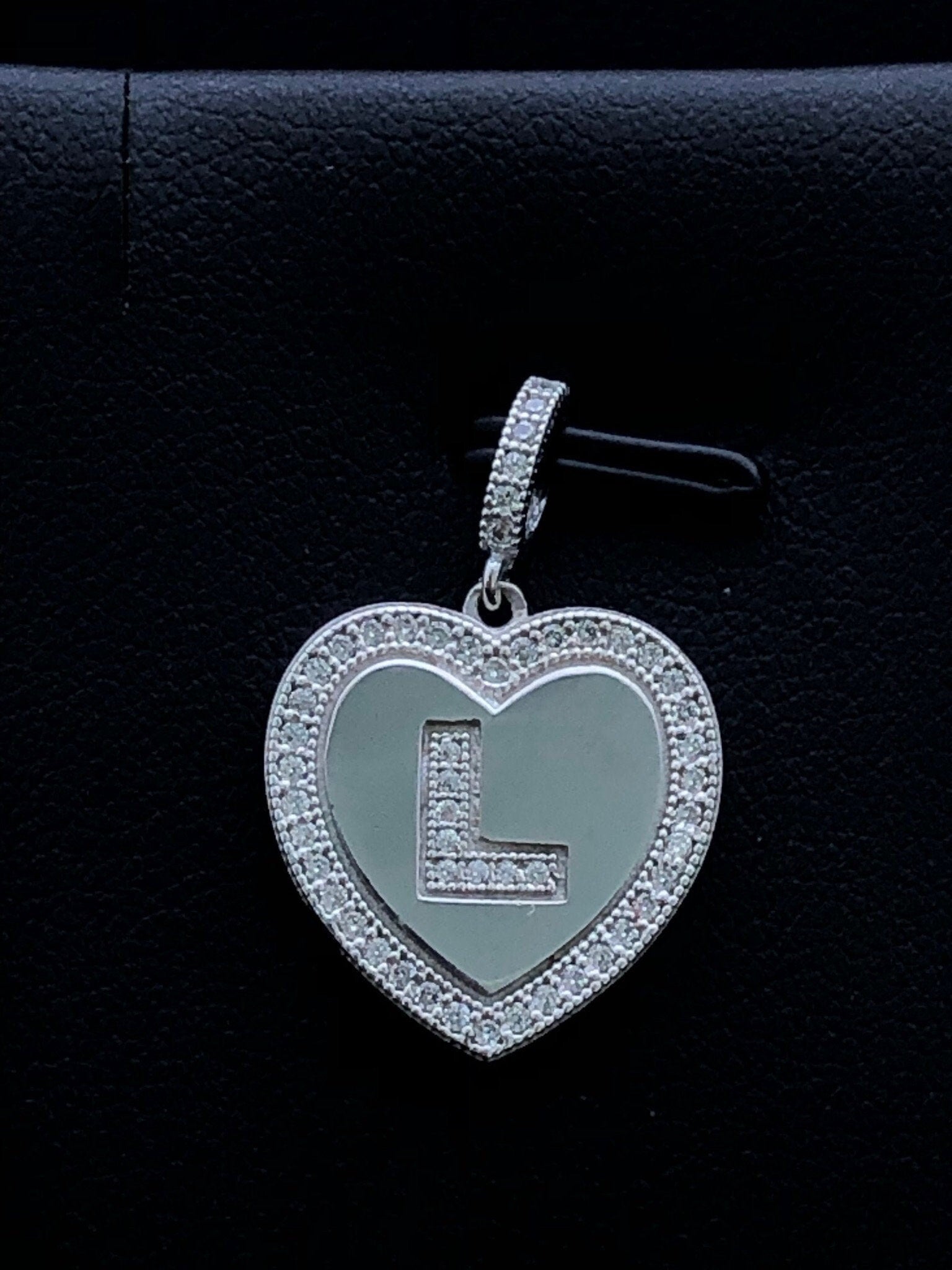 LIV Platinum Sterling Silver .925 White Sapphire Initial L Heart Halo Necklace Gift