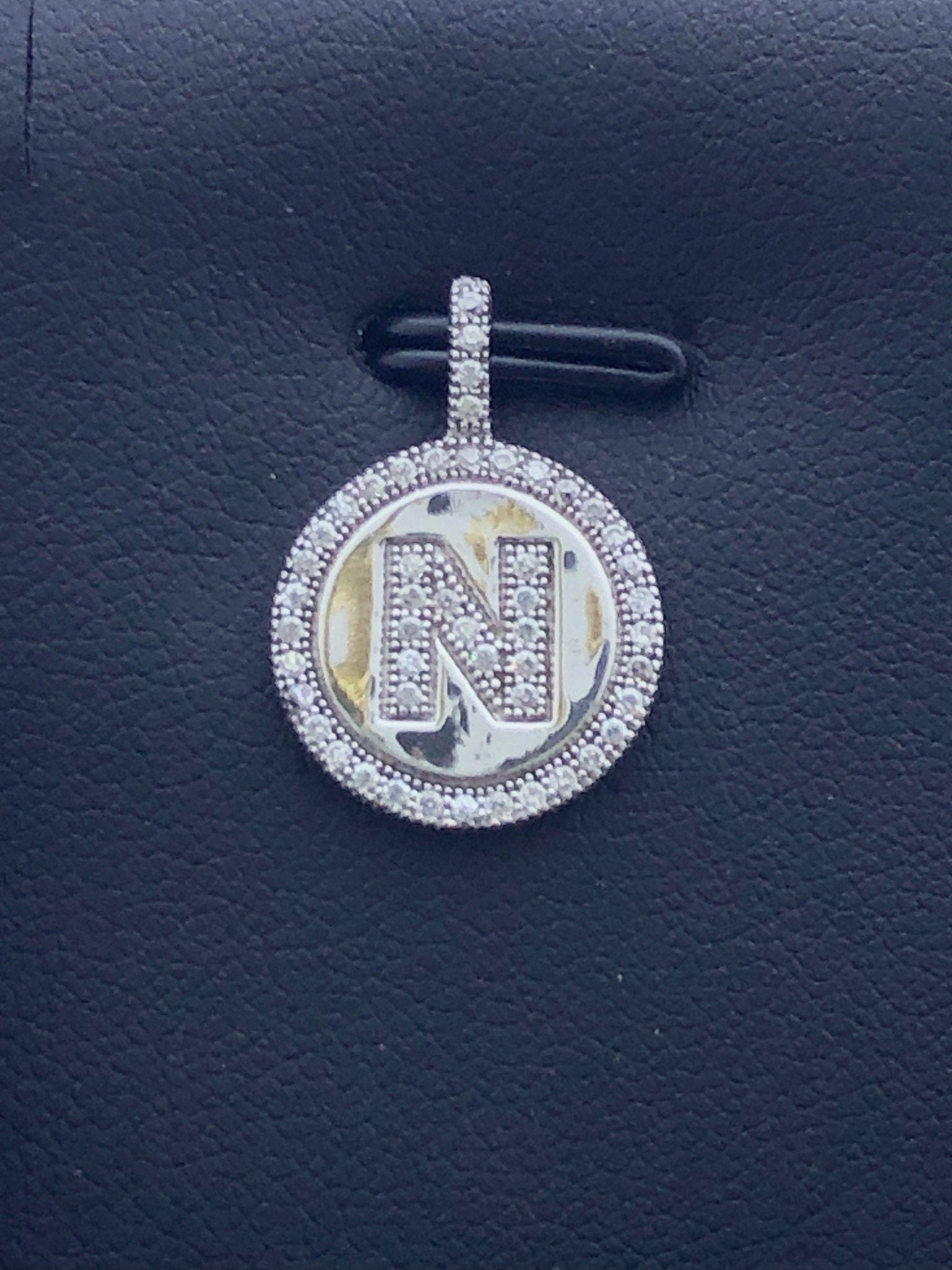 LIV Platinum Sterling Silver .925 White Sapphire Initial N Round Halo Necklace Gift