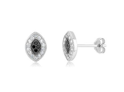 LIV Platinum Sterling Silver Black White Sapphire Pave Evil Eye Design Stud Earrings