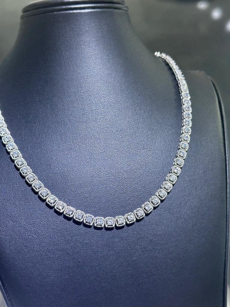 LIV Platinum Sterling Silver Cushion Halo Simulated White Sapphire Tennis Necklace