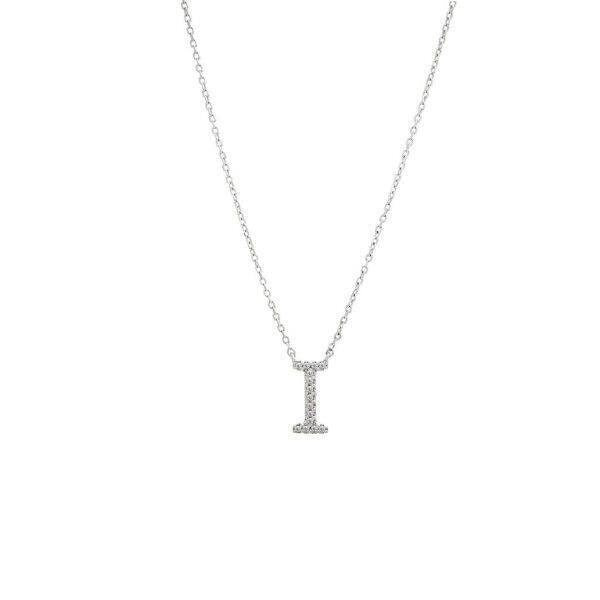 LIV Platinum Sterling Silver & Diamonds Initial I Pearl Station Halo Necklace 16" L