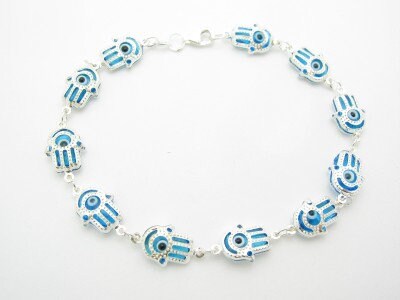 PLATINUM STERLING SILVER EVIL EYE KABBALAH HAMSA GOOD LUCK EYE CHARM BRACELET